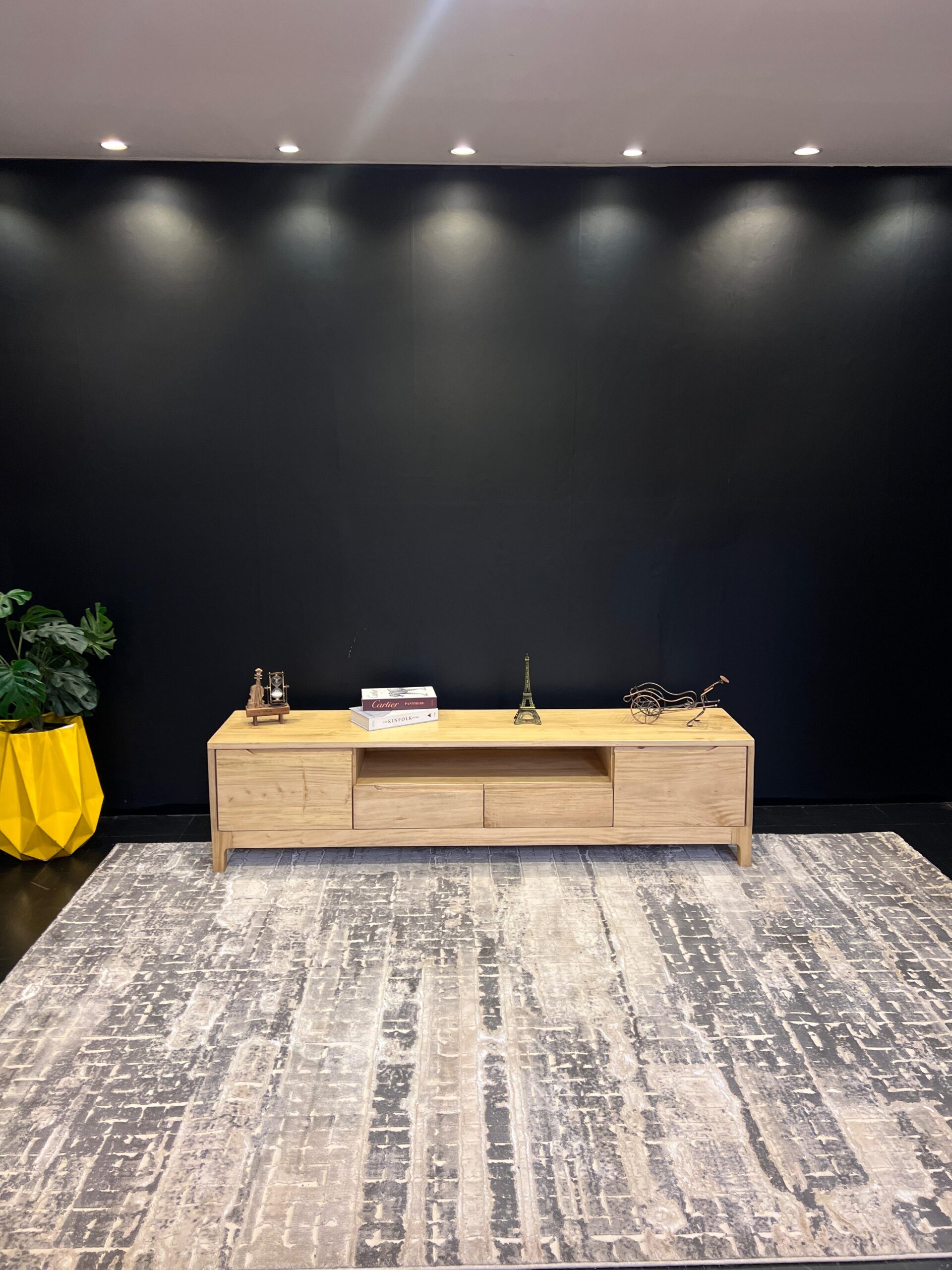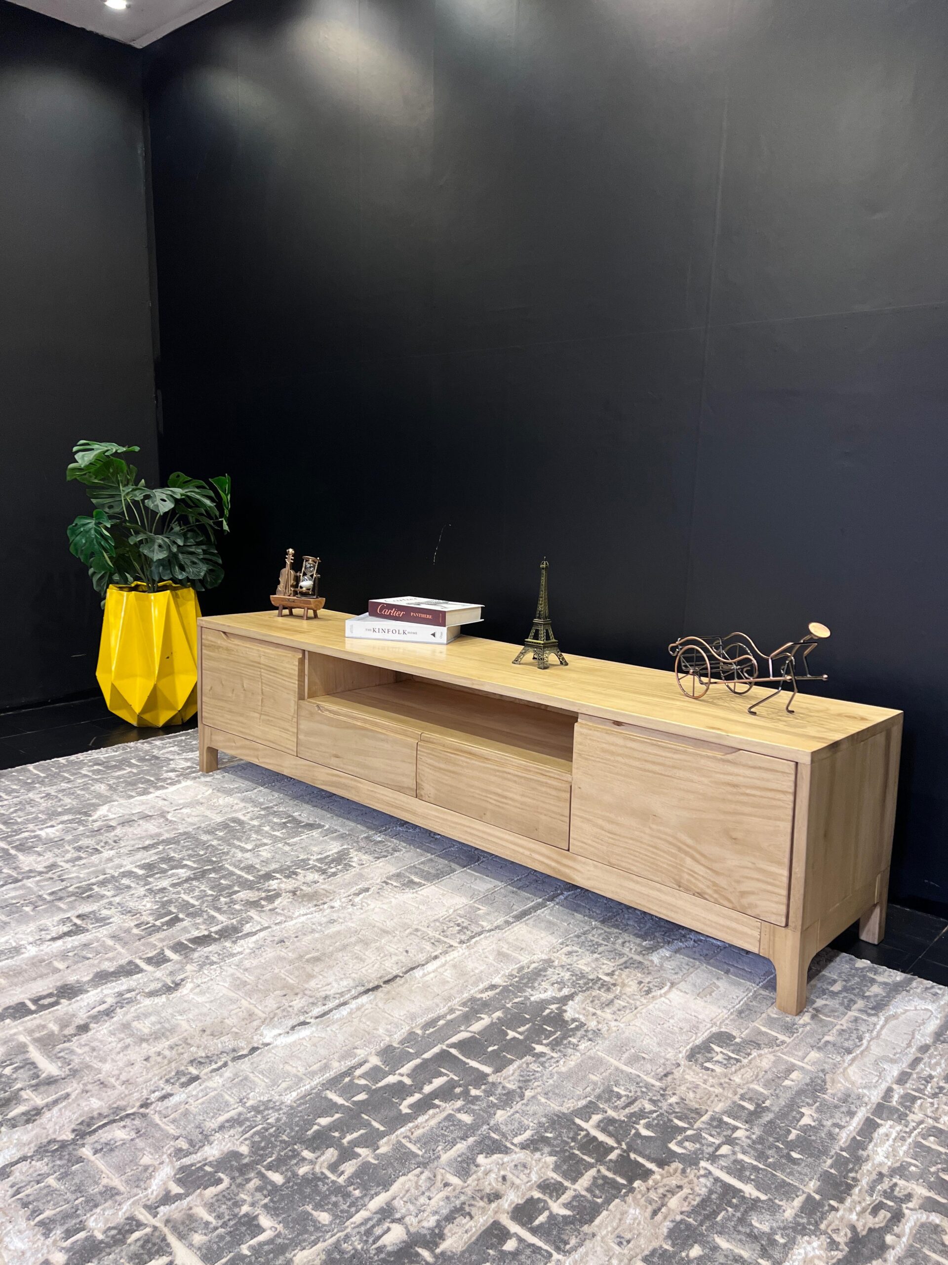 A simple oak wood tv stand crafted with clean lines and a timeless natural finish.
