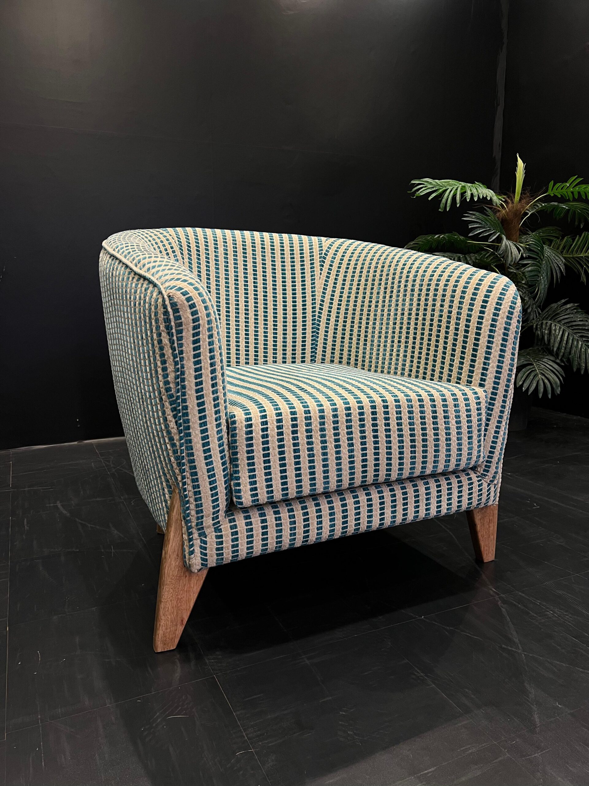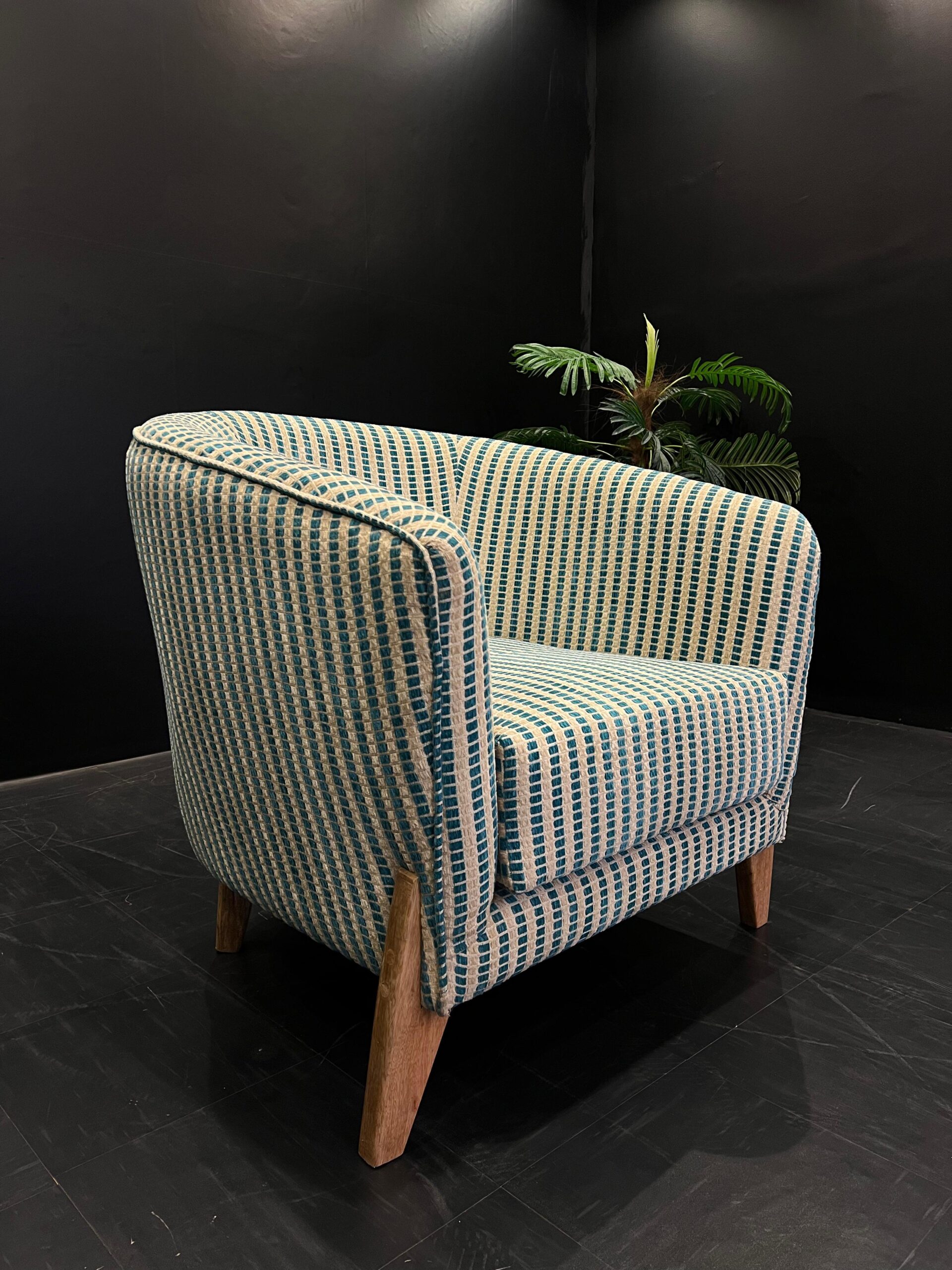 Featuring a refreshing blue and and off white print,this accent chair offers,a vibrant,modern look.