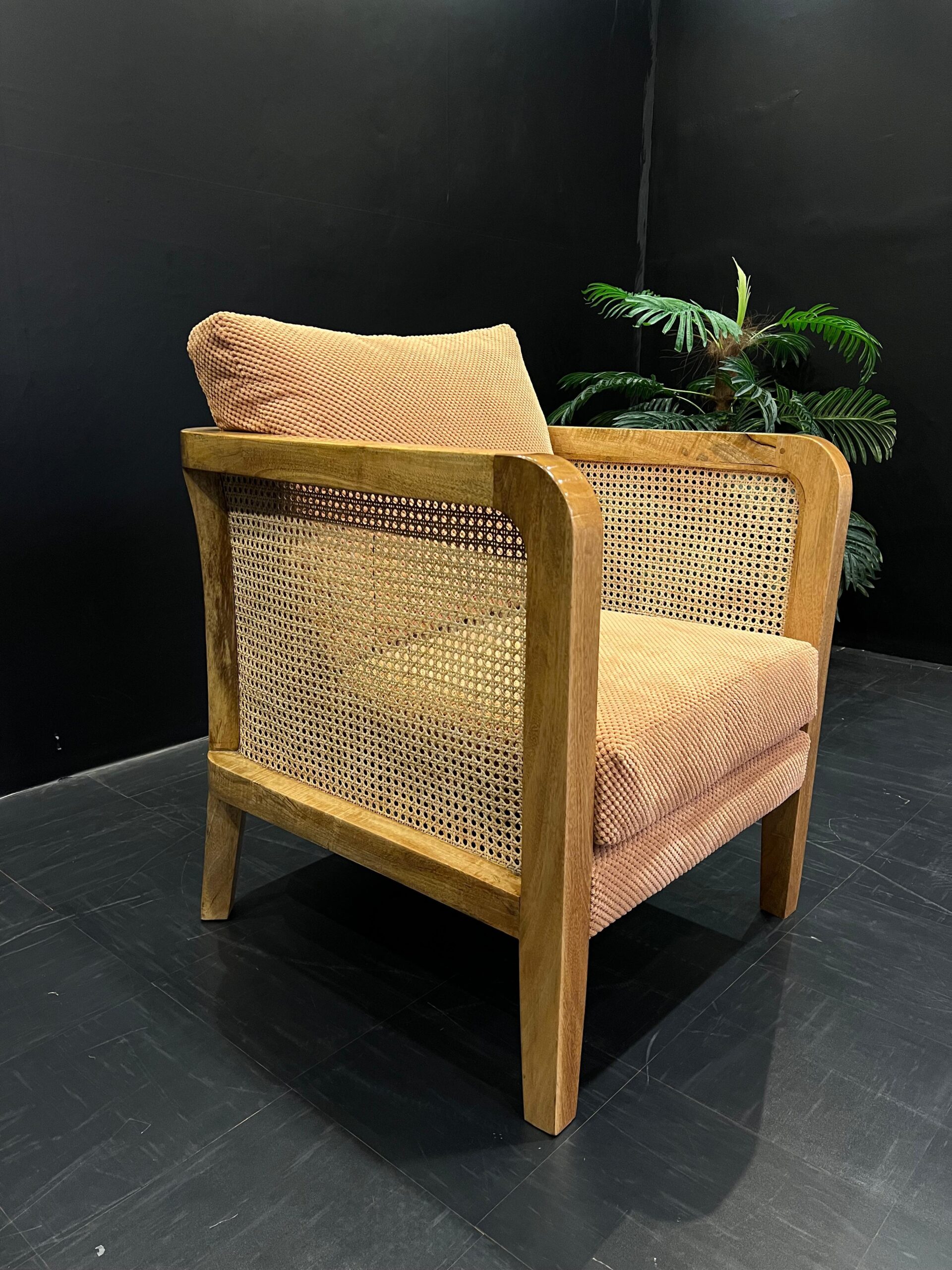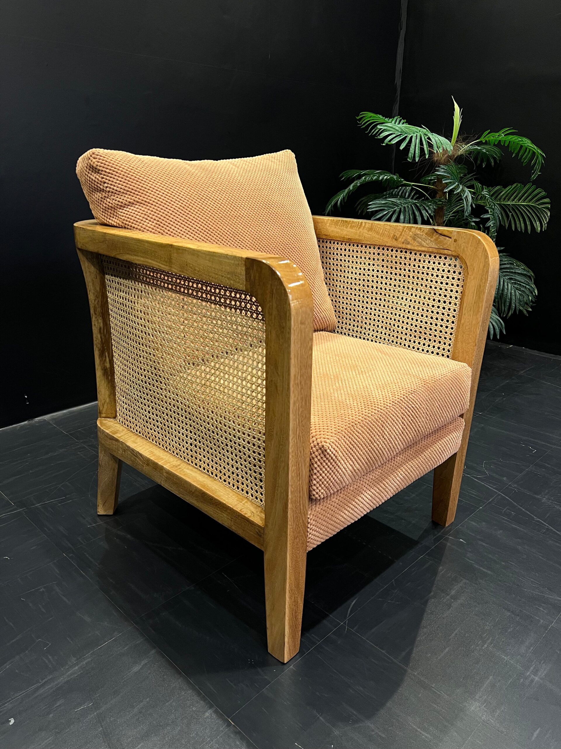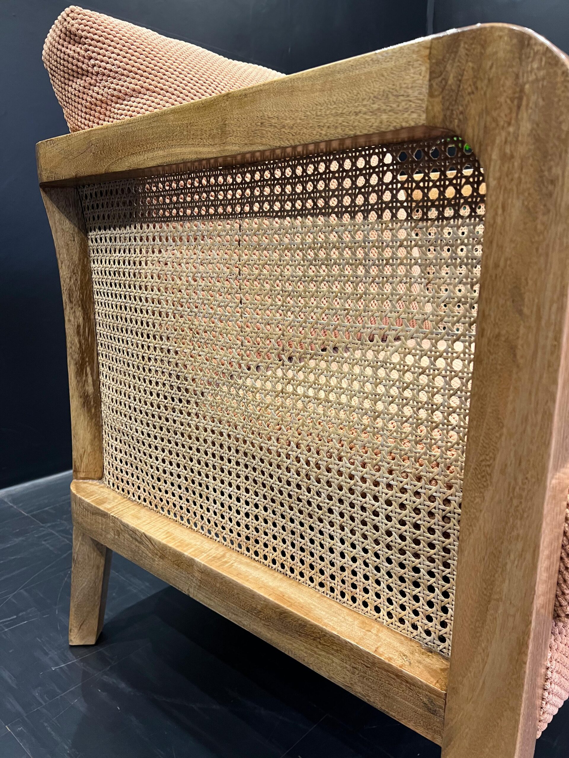 This accent is a blend of natural textures and durability.The sturdy mango wood frame provides a solid foundation,while the rattan adds an airy organic touch