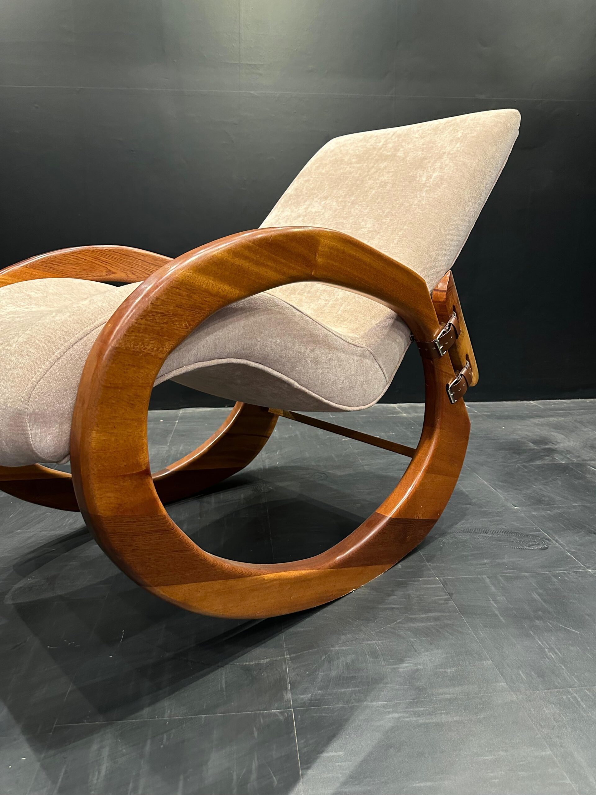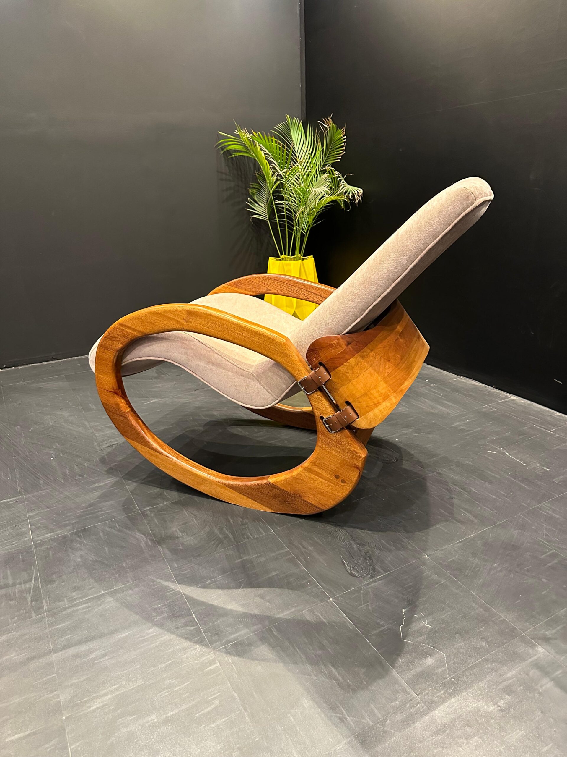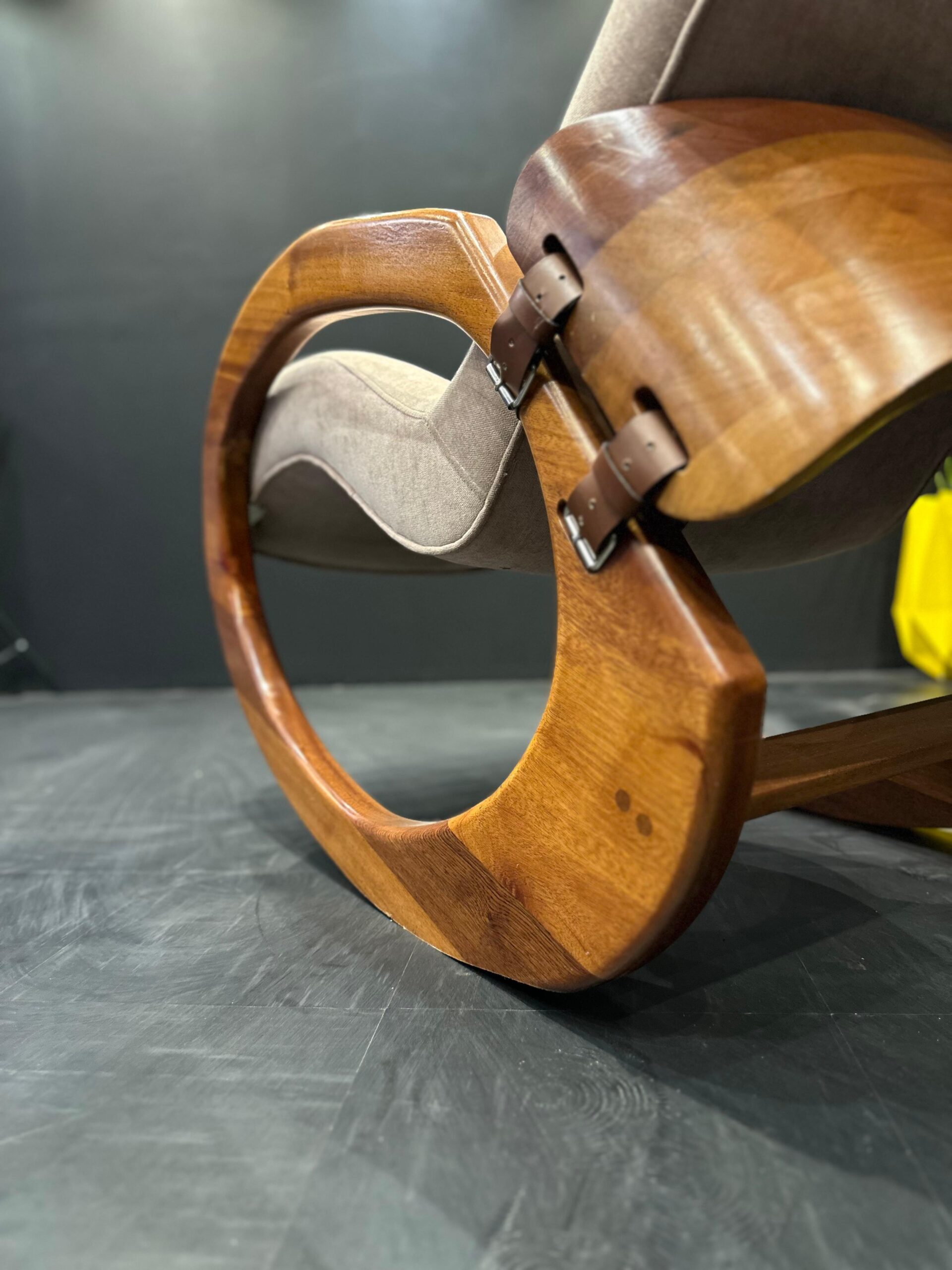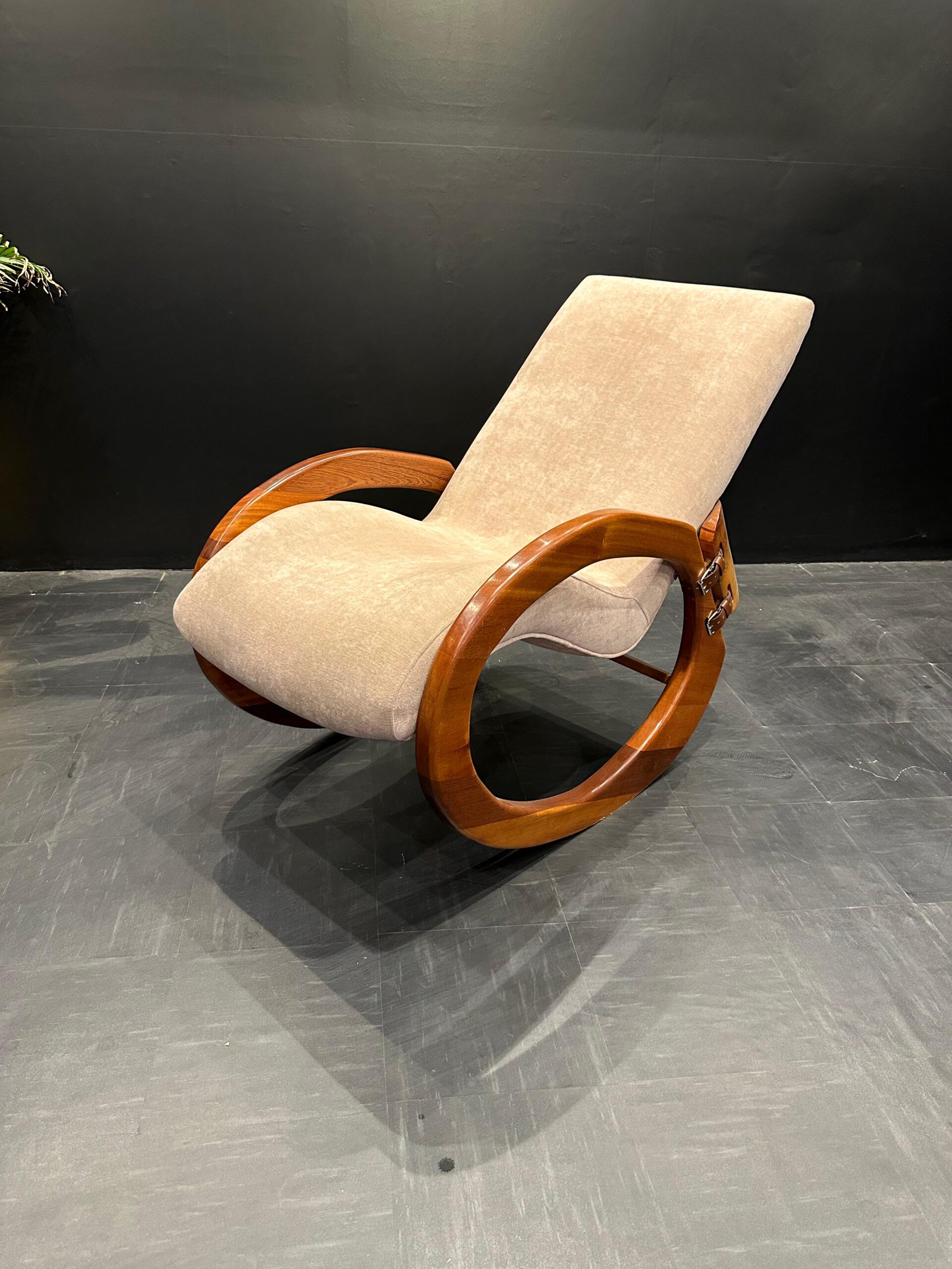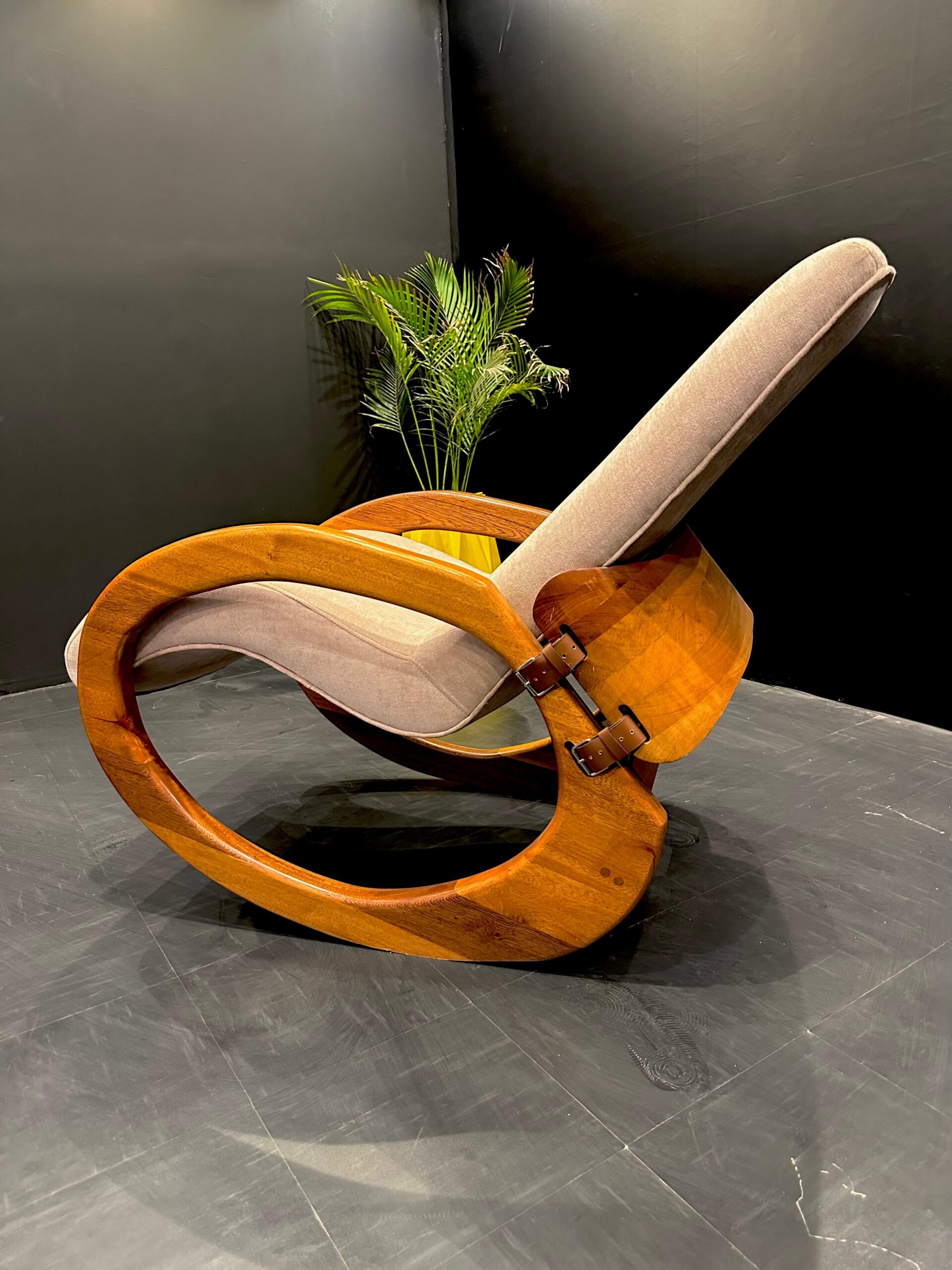-The sturdy wooden frame offers timeless elegance and gentle motion, perfect for relaxing style.